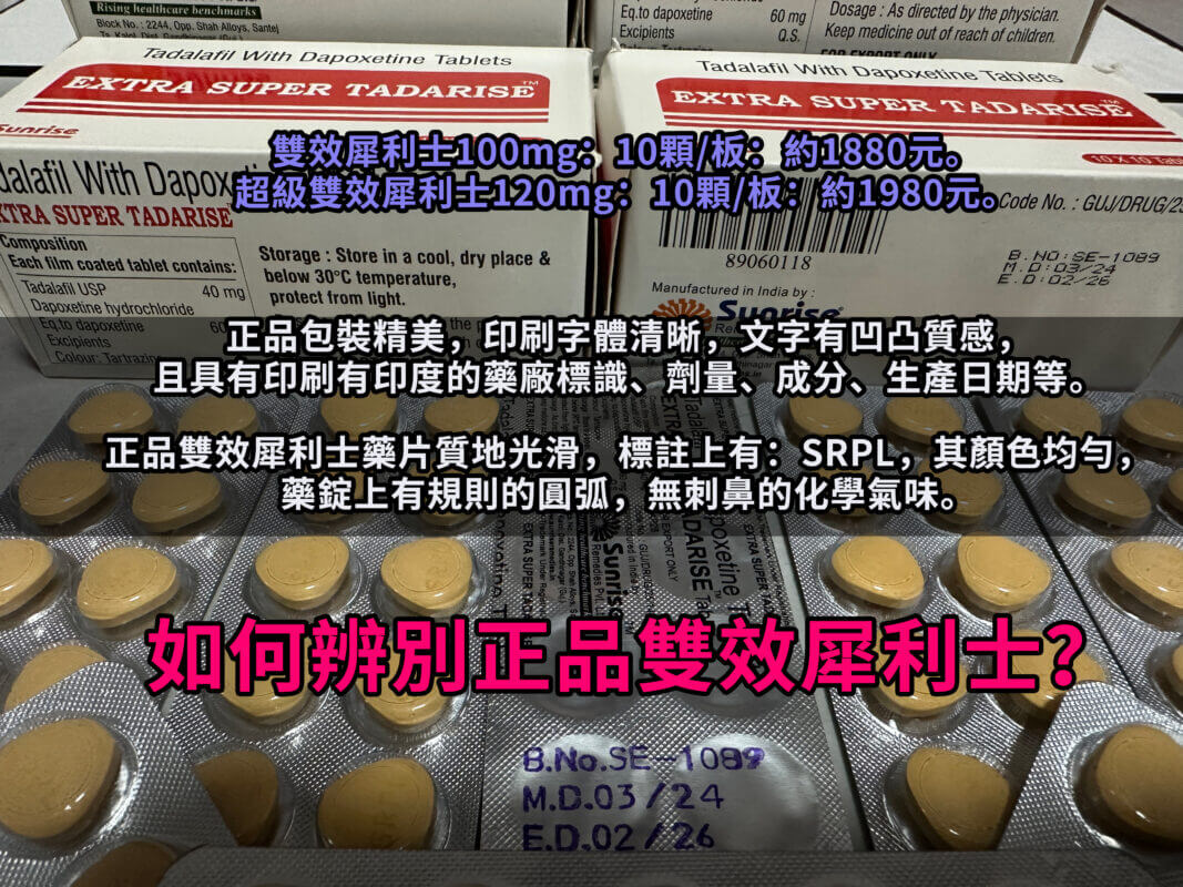 雙效犀利士(Super Tadarise)是一款結合了他達拉非(Tadalafil)助勃達泊西汀(Dapoxetine)早洩的藥物,專為同時治療勃起功能障礙(ED)和早洩(PE)設計。由於其強大的雙重效果,許多男性對此藥物需求高漲。然而,如何確保購買到正品雙效犀利士,成為一個重要的問題。